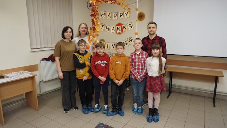 Вчителі показували дітям відео про історію свята та його значення. Учні грали тематичні ігри та слухали розповідь про те, як проходить День Подяки в Америці.